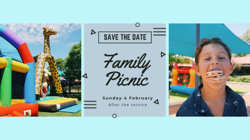 The FAMILY PICNIC will be held straight after the 9.30am Morning Service.